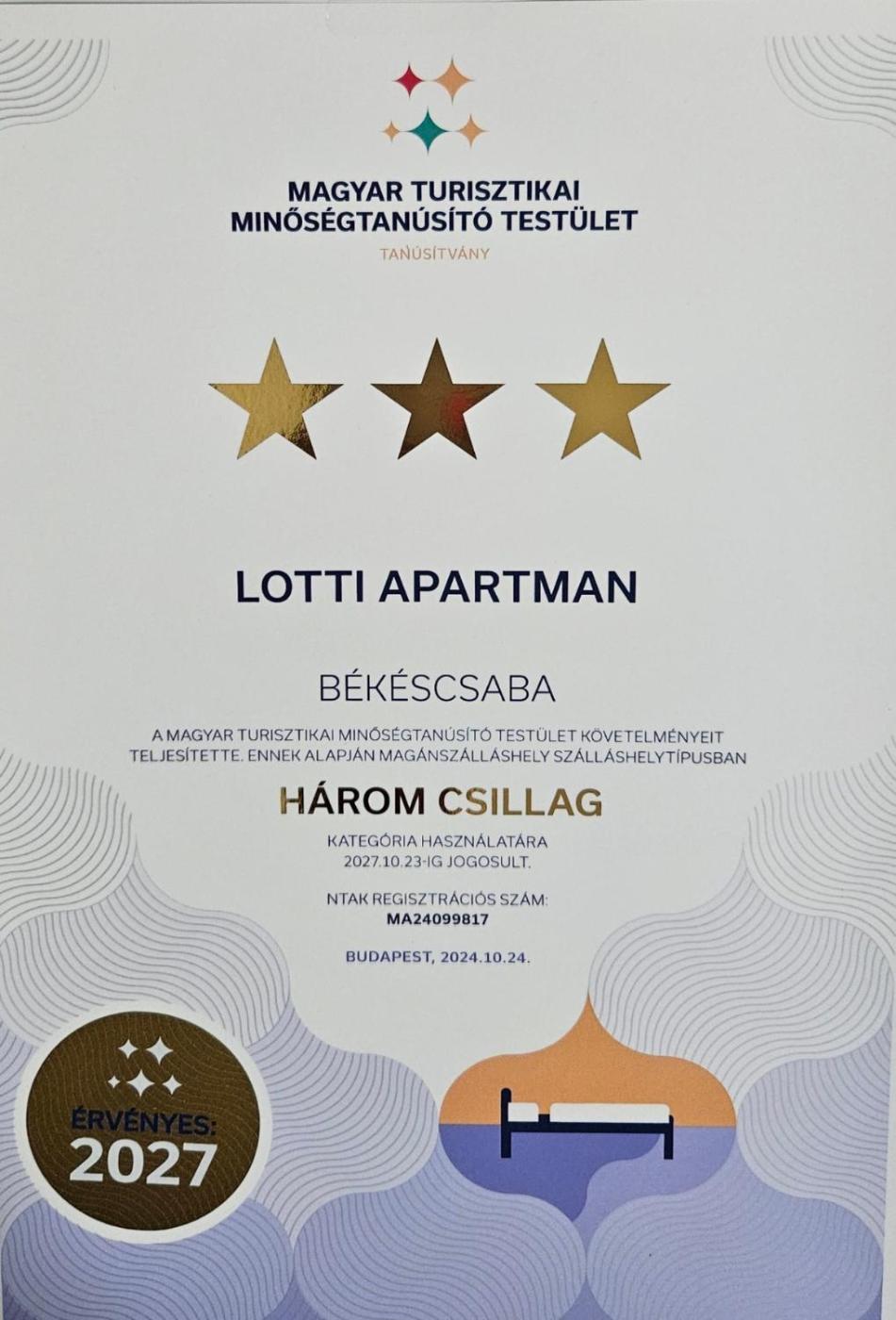 Set in Békéscsaba, 18 km from Castle of Gyula and 18 km from Gyula Train Station, Lotti Apartman offers air conditioning. Among the facilities at this property are private check-in and check-out and bicycle parking, along with free WiFi throughout the property. The property offers a childrens playground and outdoor furniture.
